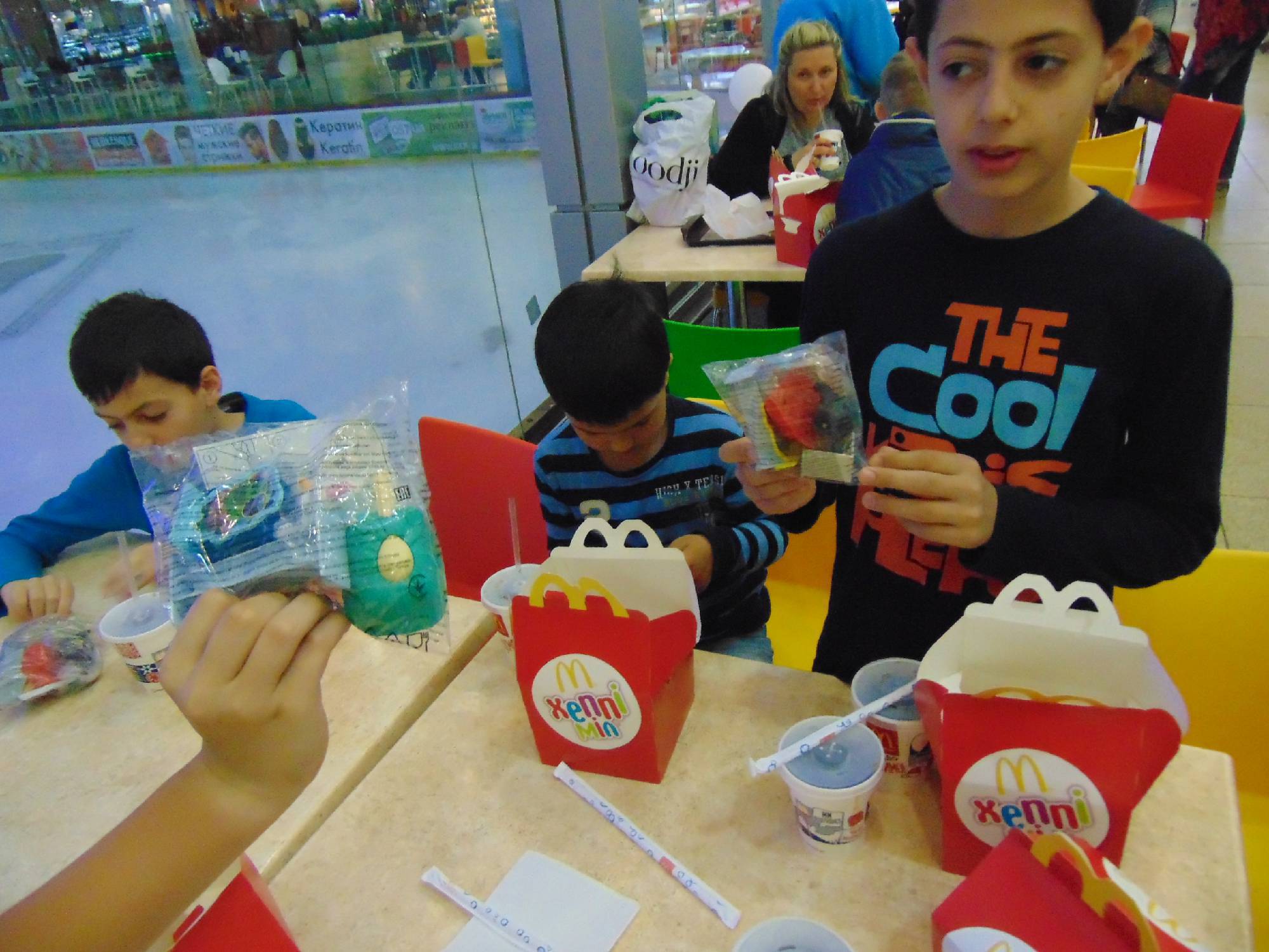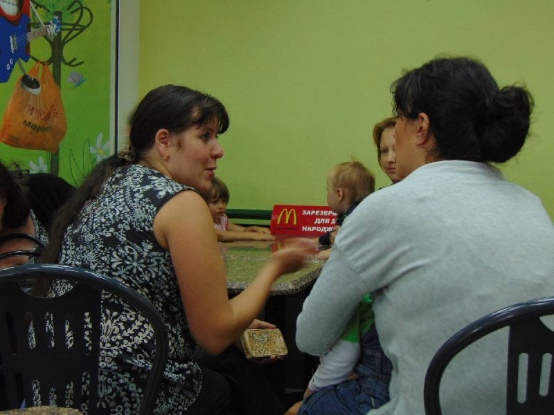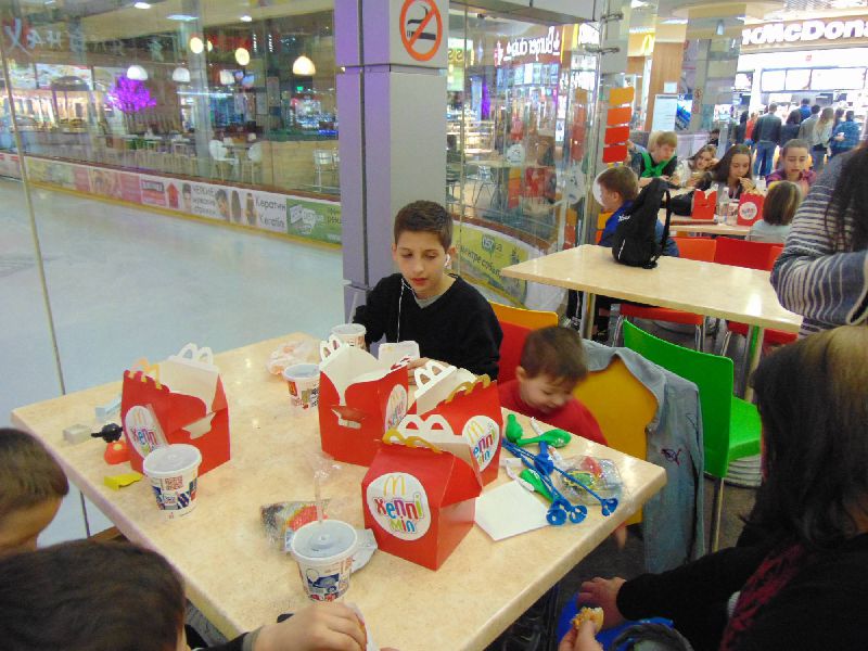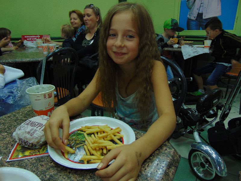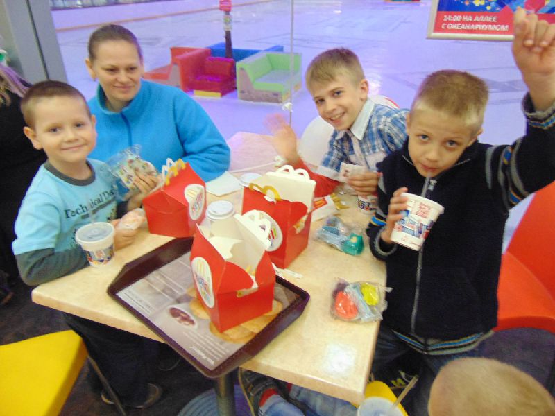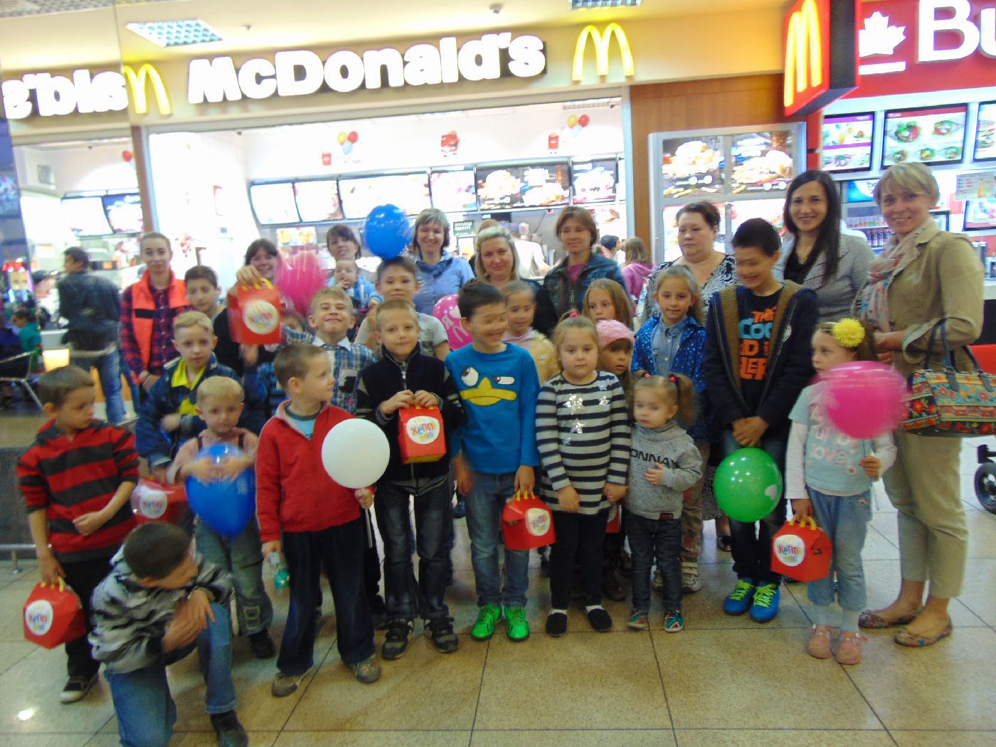 Когда-то буква "М" для нас, теперешних мамочек, была заветным желанием. Попасть в Макдональдс, пробиться через толпу, попасть и съесть заветную булочку. Сейчас все проще, но радость от съеденной булочки не меньше. И наши дети 10 июня испытали восторг от посещения Макдональдса. Шипучий напиток, который так редко наши мамы добровольно покупают. От этого он еще вкуснее становится. Свежая булочка. Но самое главное – картошка и игрушка. Дети сразу устроили соревнования. Восторг и спортивный азарт подарили нашей организации щедрые люди из Макдональдса в Караване, метро Героев Труда. Спасибо Вам, что не забываете о семьях, богатых на детей.